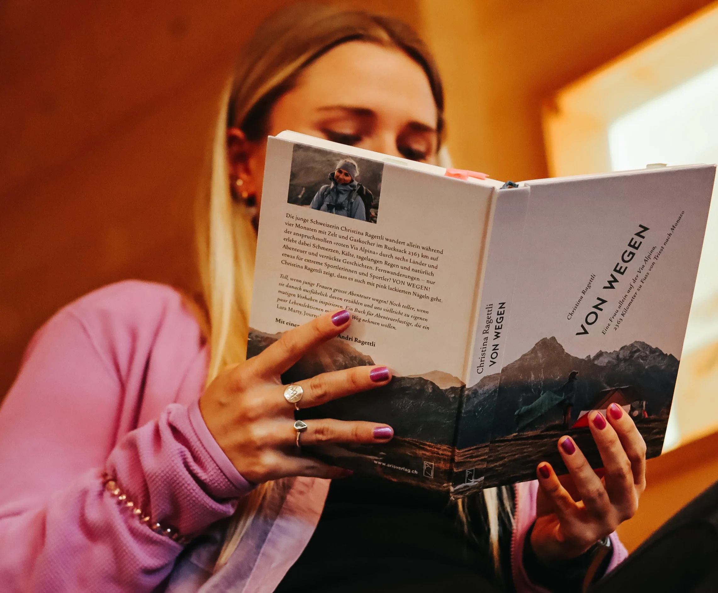 “Der Erfolg von VON WEGEN hat mir viele Einladungen zu Lesungen beschert. In den letzten drei Jahren war ich auf einer Art Buch-Tour de Suisse unterwegs – von Brig, Grenchen, Zürich, Chur und Grindelwald bis nach Köln, Berlin, München und weiteren Städten. Vor meist ausverkauften Sälen durfte ich meine Begeisterung fürs Weitwandern in den Alpen weitergeben. Insgesamt waren es rund 90 Veranstaltungen, und noch immer erhalte ich Anfragen für weitere Vorträge und Lesungen.” - Christina Ragettli