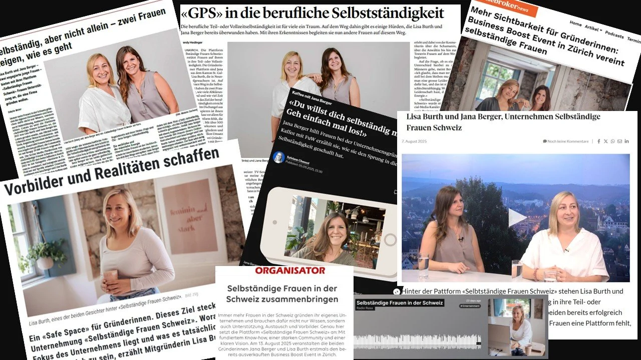Einige Beispiele der Berichterstattungen über Selbständige Frauen Schweiz.
